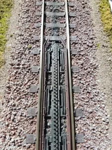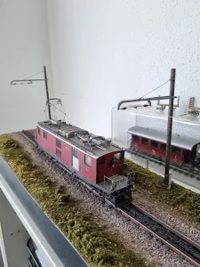 Das Modell enthält viele Eigenbauten wie voll funktionsfähige Zahnstangeneinfahrt, Fahrleitungsmasten oder Gebäude.