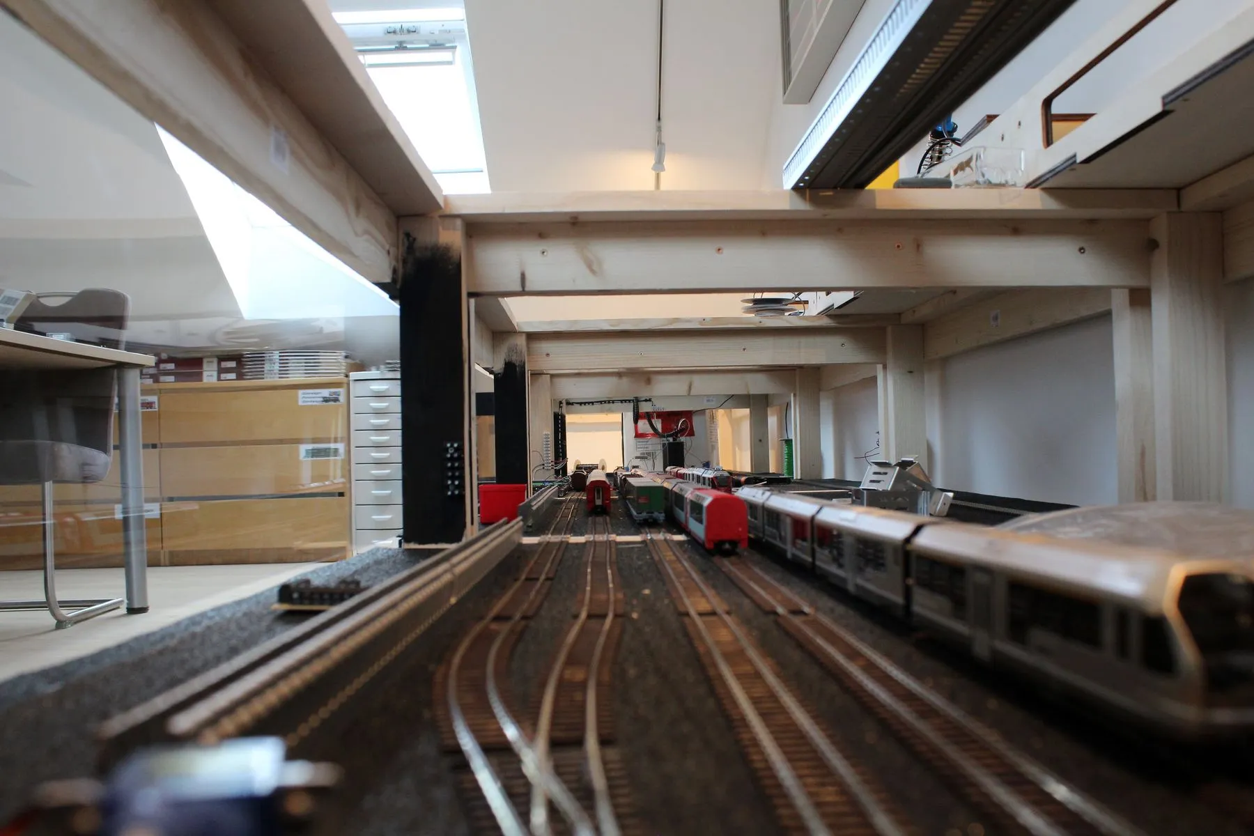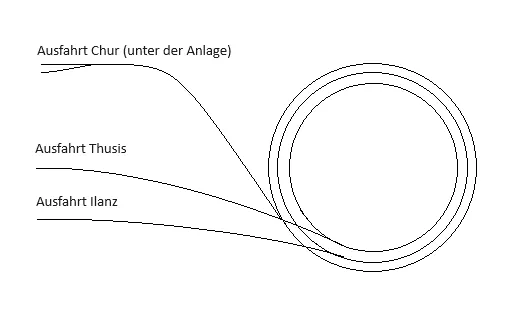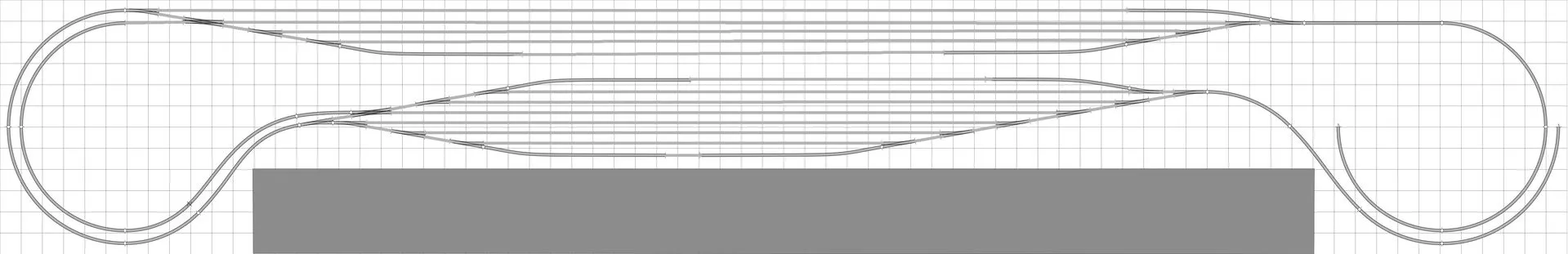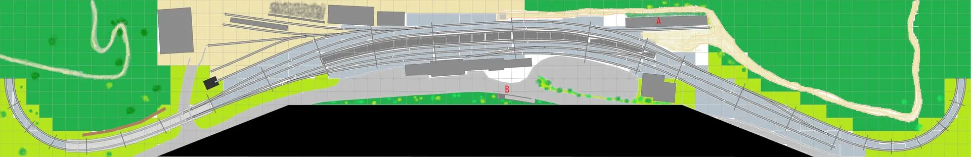 Die sichtbare Strecke verlässt die Sation jeweils zu beiden Seiten über einen Wendel mit 2 vollen Windungen in den Schattenbahnhof. Man könnte hier mehr rausholen, allerdings möchte ich für den Anfang etwas reduzierter starten und kann später bei Bedarf noch aufstocken.