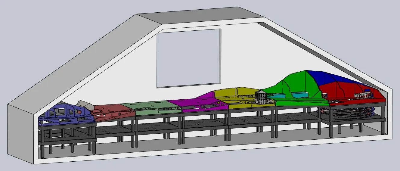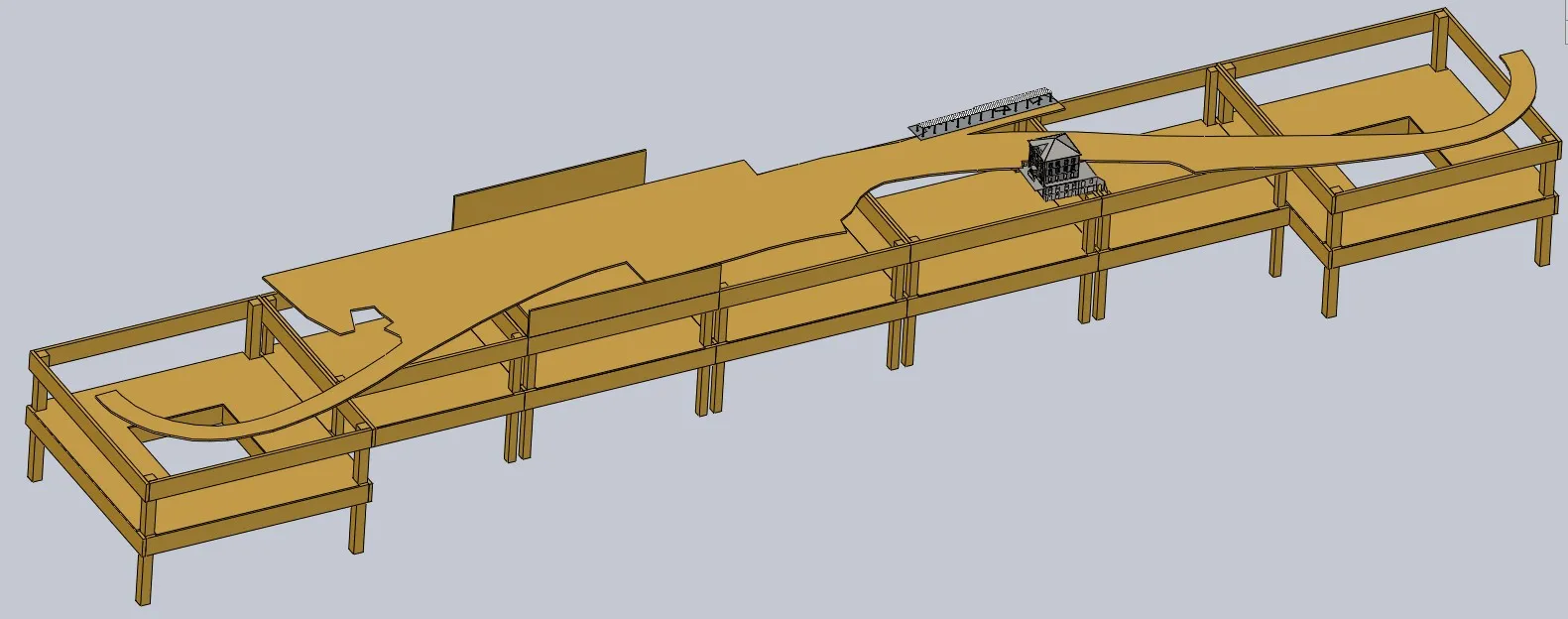 Aktuell zeichne ich die Unterkonstruktion im 3D um auch den Holzbedarf zu ermitteln. Sobald die Zeichenarbeit abgeschlossen ist, werde ich die Unterkonstruktion ebenfalls vorstellen. Den Gleisplan möchte ich gerne im passenden Maßstab ausdrucken lassen um ihn direkt aufs Holz zu übertragen.