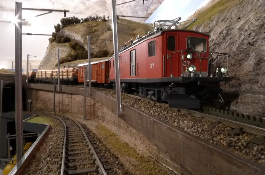 Eine Änderung besteht darin, dass auf der Ebene 3 die Ausfahrt Disentis jetzt eingleisig verläuft, wie auf dem Vorbild.