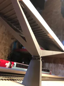 Die Brücke selber besteht aus 15 Brückenelenten, 2 Brückenköpfe und den Beiden Quadropottern. Da der Drucker nur eine Arbeitsfläche von knapp 20cm hat ist dass dann halt schon ein Weilchen gegangen bis es gedruckt war. In der Zwischenzeit hatte ich Zeit für einen neuen Bahnhhof...