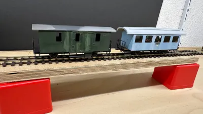 die zwei 'Verfärbten' brauchen noch einen Postwagen. Etwas schneiden, kleben, schleifen, spachteln usw. und es sieht schon mal brauchbar aus...