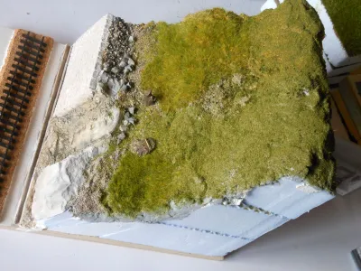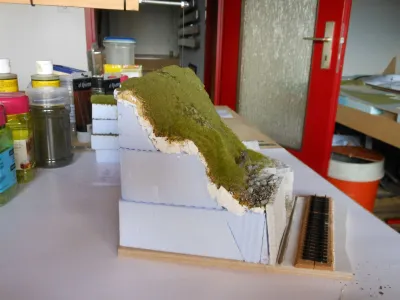 Und bei mir ist dieses Muster entstanden: Basis ist Styrodur und dann Geländeform mit Scultamold:
