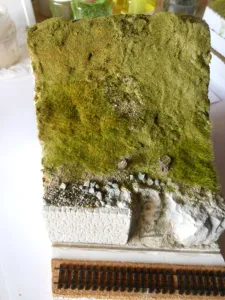 In der Zwischenzeit habe ich mir für die Landschaft eine Art Standardarbeitsmethode angelernt, die ich jetzt auf das neue Eckensegment angewendet habe, als Verbindung zwischen das Val Nava-Segment und den 'Schattenbahnhof'. (Abstellbahnhof ist eigentlich eine bessere Benamung.) Ich möchte diese Methode auch auf Filisur selbst anwenden: landschaftlich ist da noch nichts anwesend. Eine Art von Generalprobe, also.