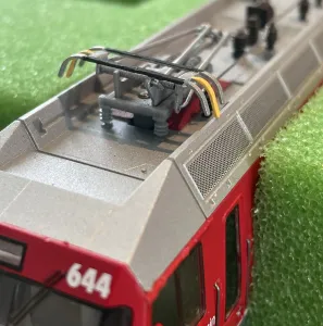 Ebenfalls habe ich mich an einer Ge 4/4 III mit dem zurüsten / supern geübt. Ich bin begeistert, wie viel besser das Gesicht der Lok dadurch aussieht, aber zweifle noch einwenig an meinen Lackierfähigkeiten, denn ich habe es fast nicht hinbekommen die metallernen Griffstangen zu Lackieren.