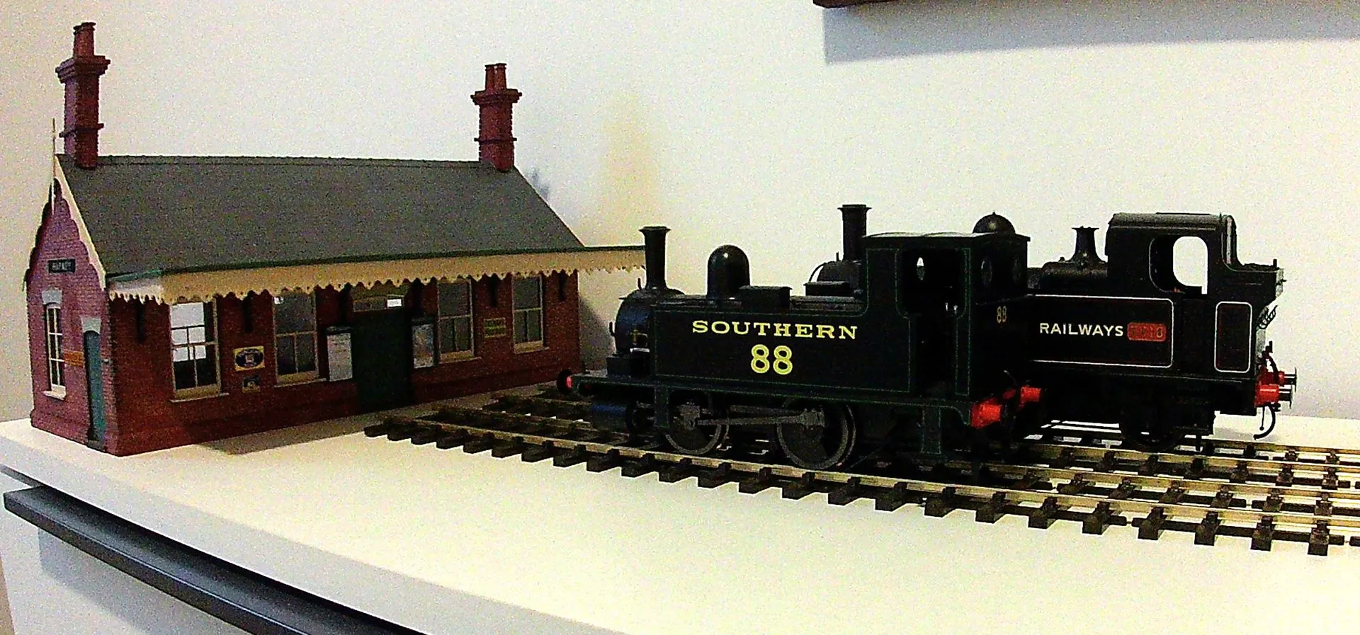 Eine Stellprobe hat ergeben, dass ich aufgrund des geringeren Lichtraumprofils der britischen Eisenbahnen die Gleise näher aneinander bringen kann als ursprünglich gedacht! So komme ich gut mit der maximalen Tiefe hin!